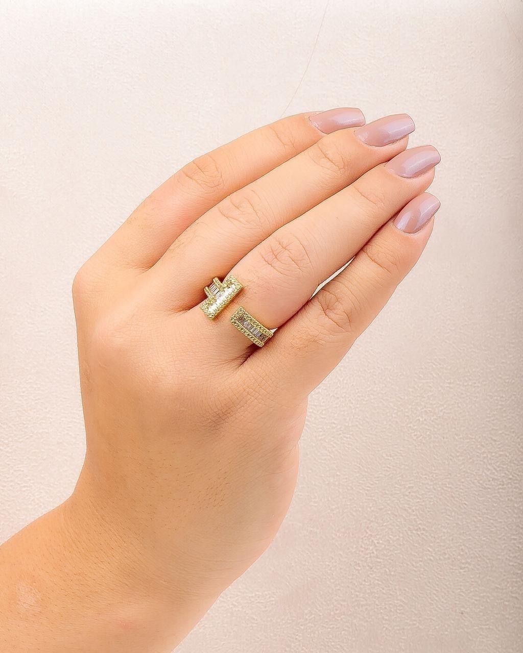 Anel banhado a ouro 18k ou a rodio branco com cravacao de zirconias