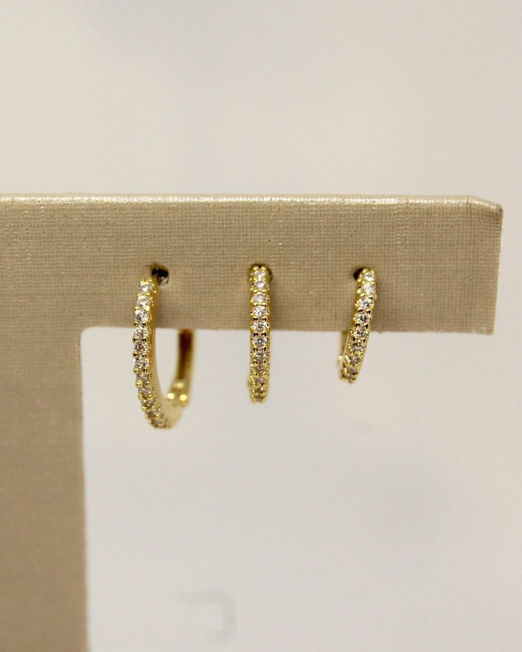 Brinco trio argola click cravejado com microzirconias e banho ouro 18k