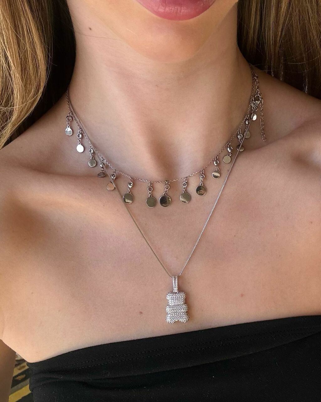 Colar no banho ródio com plaquinhas e zircônias cristais.