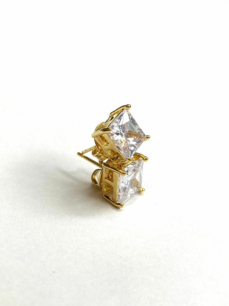 brinco banhado a ouro 18k com uma zirconia quadrada