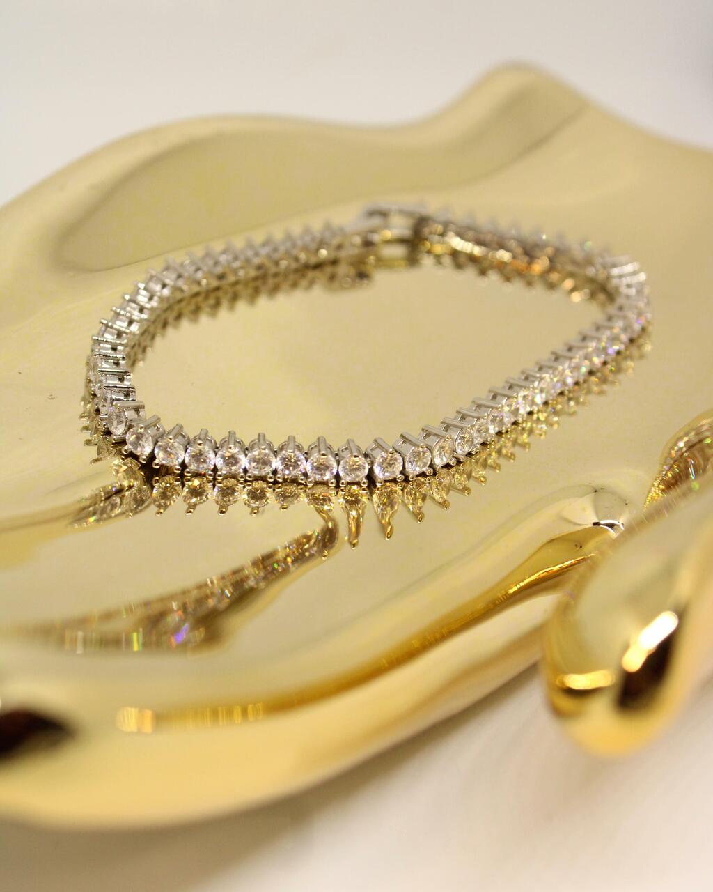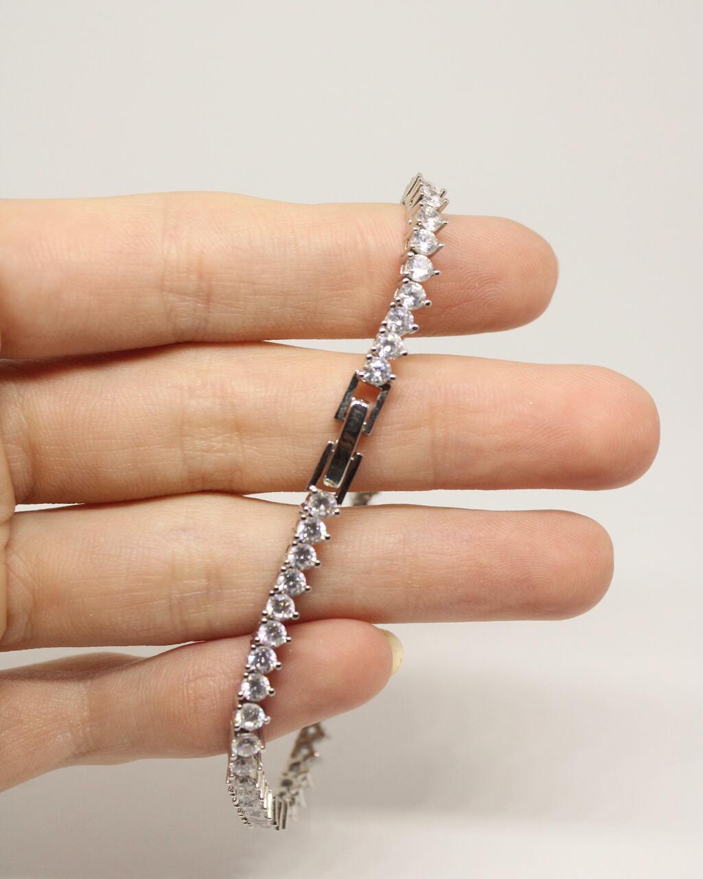 Pulseira riviera três pontas com zircônias cor cristal 3 mm e banho ródio branco